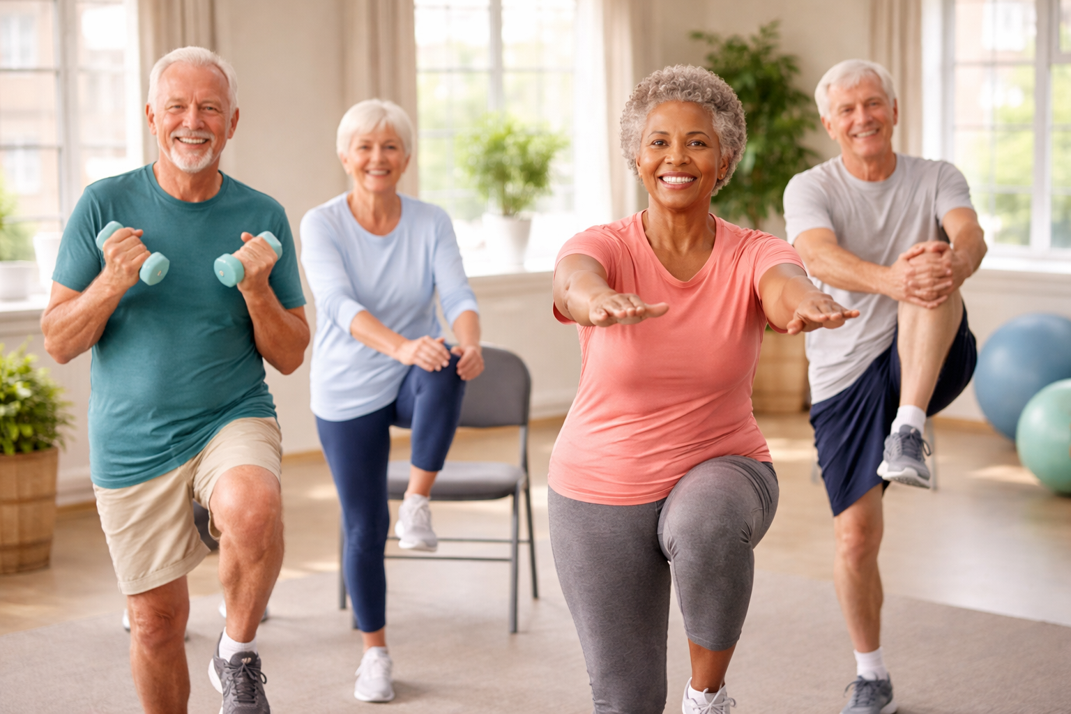 Simple exercises like standing on one foot, heel-to-toe walking, and chair exercises can significantly improve balance and stability.