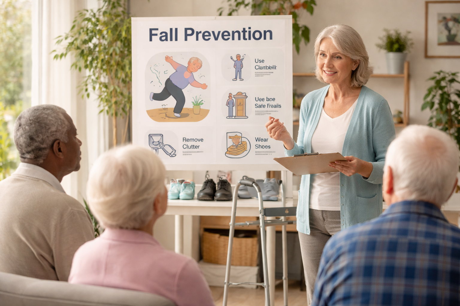 By combining exercise, environmental safety improvements, professional assessments, mobility support, and personalized care, older adults can significantly reduce their risk of falling.